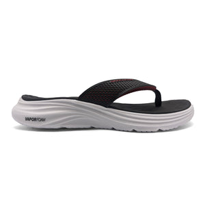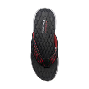 SKECHERS Men's sports style thong sandal model VAPOR FOAM - SAYTO with cushioned upper in honeycomb-shaped KPU synthetic mesh that combines BLACK and RED colors. Flexible traction sole with ultra-light VAPOR FOAM ™ cushioning.